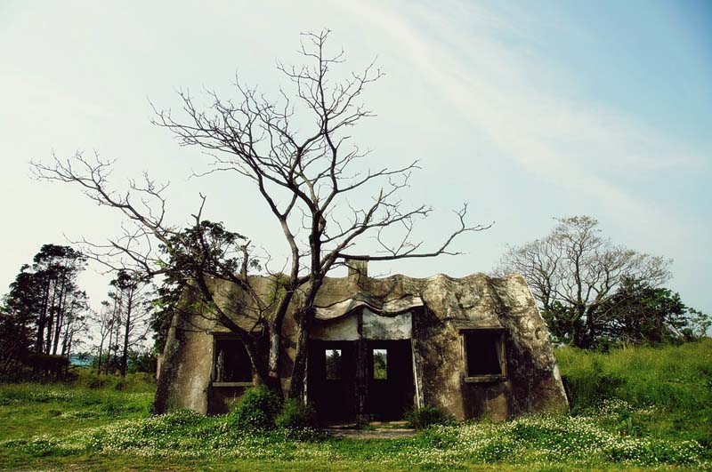아무렇게나 자라는 풀들과 나란히 서있는 삼나무들이 보입니다.