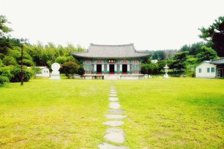 현재는 새로 단장한 대웅전과 구품연지 연못.