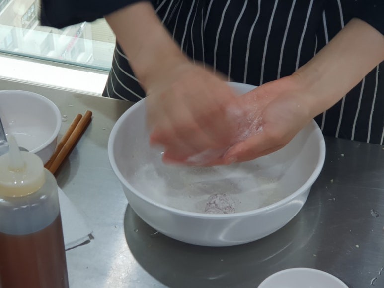 데칠거 ->절일거 ->불릴거 ->육수 ->반죽