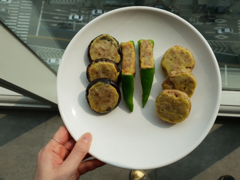 제이킴 샘이 손수 만들어 준 육원전 풋고추전 표고전 맛있게 먹었습니다 감사합니다