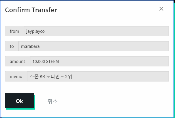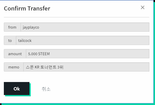 - 1스팀 or 1SBD를 @jayplayco에게 송부합니다.