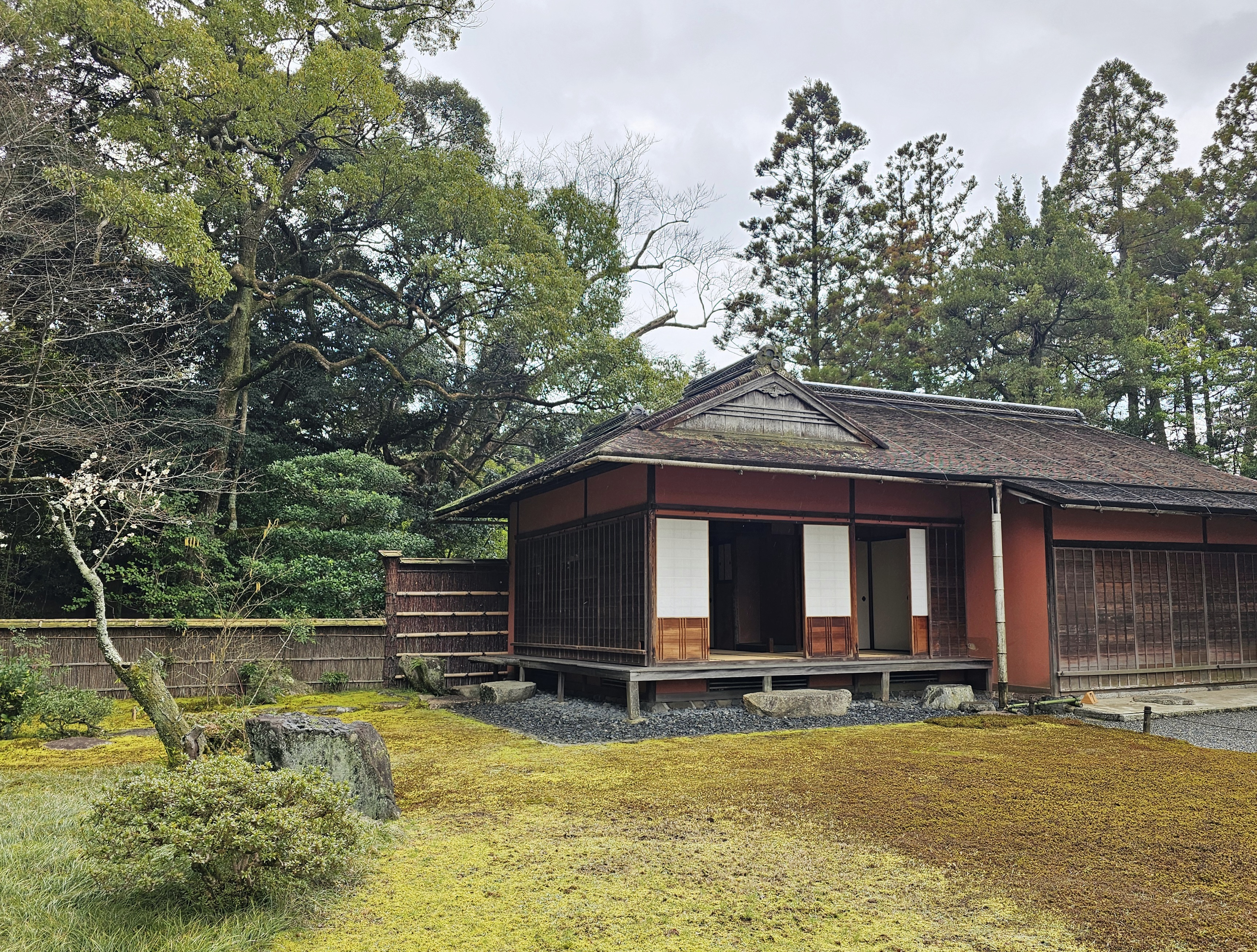 두 개의 연못과 이를 이어주는 다리와 다실의 배치가 그림처럼 아름답다. 어느 다실이건 자연을 향해 창을 내거나 문을 열거나 마루를 내어 충분히 개방적인 공간을 마련했다. 은둔과 칩거를 지향하는 모습을 하면서도 변하는 계절을 온전히 자신의 공간으로 끌어들이려는 노력이 아닐까 하는 생각이 들었다.