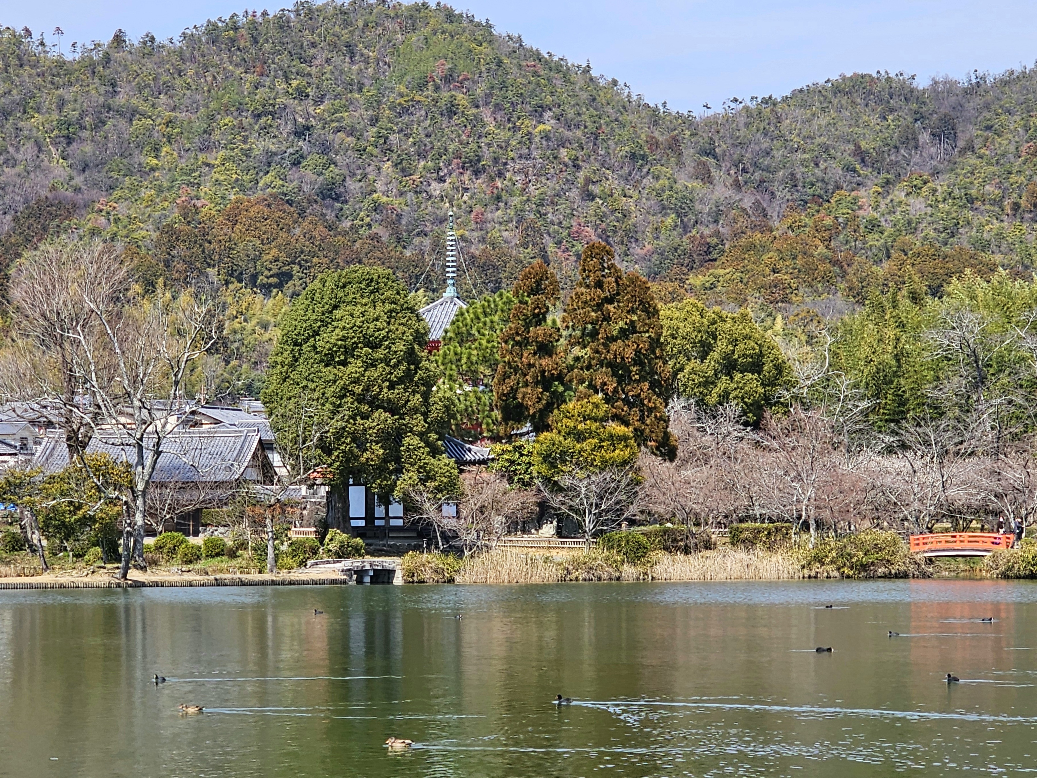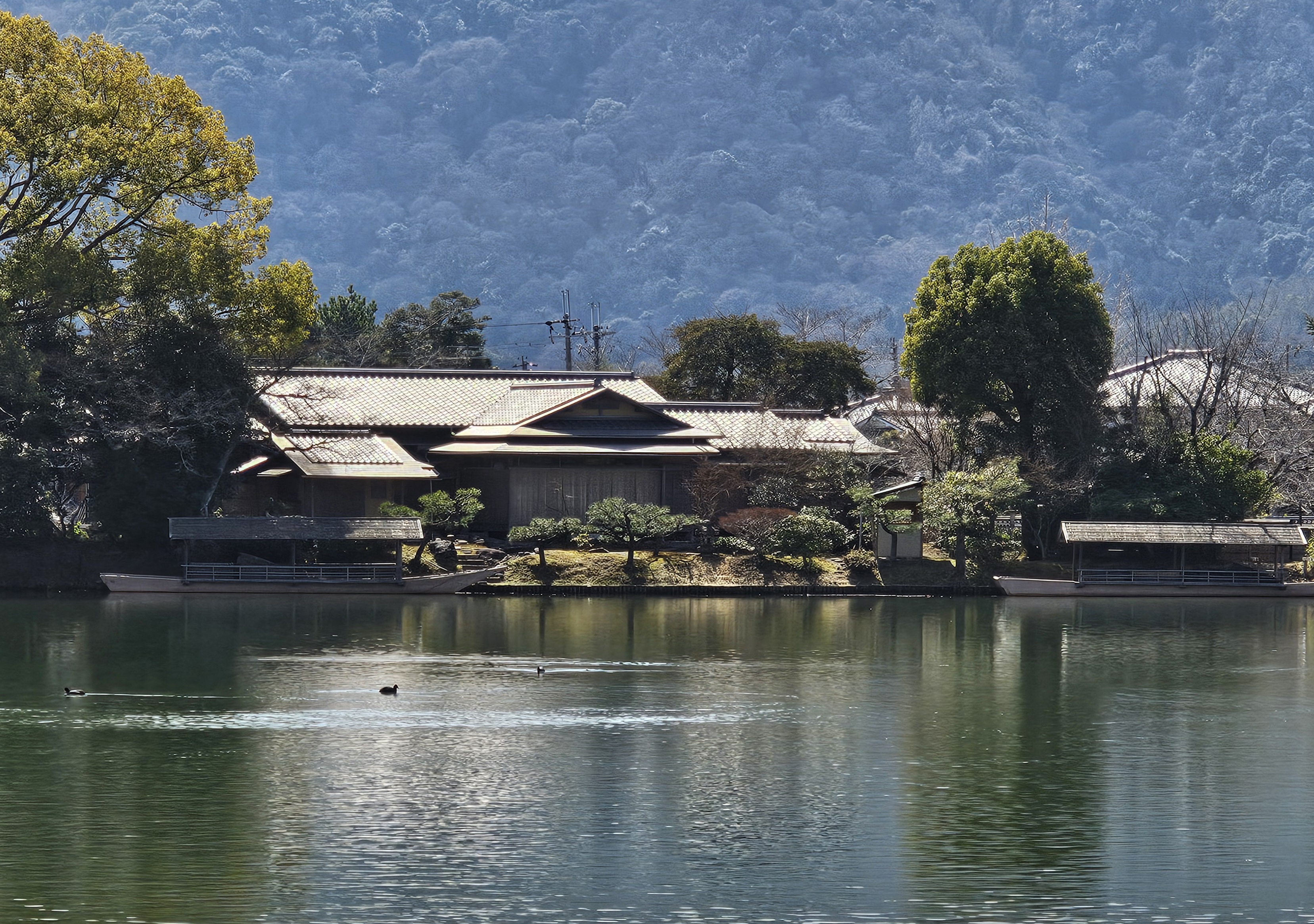 오사와 연못으로 내려선다. 이 연못 정원은 배를 타고 즐겨야 하는 방식으로 중국의 건축양식으로 만든 곳이라 한다. 지금은 가까이 가는 것도 아까울 만큼 세월을 덧입은 고요함이 편안함을 주는 곳이 되었다. 일본에 현존하는 가장 오래된 인공 연못 이라고 생각지 못할만큼 원래 그 자리에 있었던 것처럼 자연스러움이 잘 왔다고 생각하게 했다.
