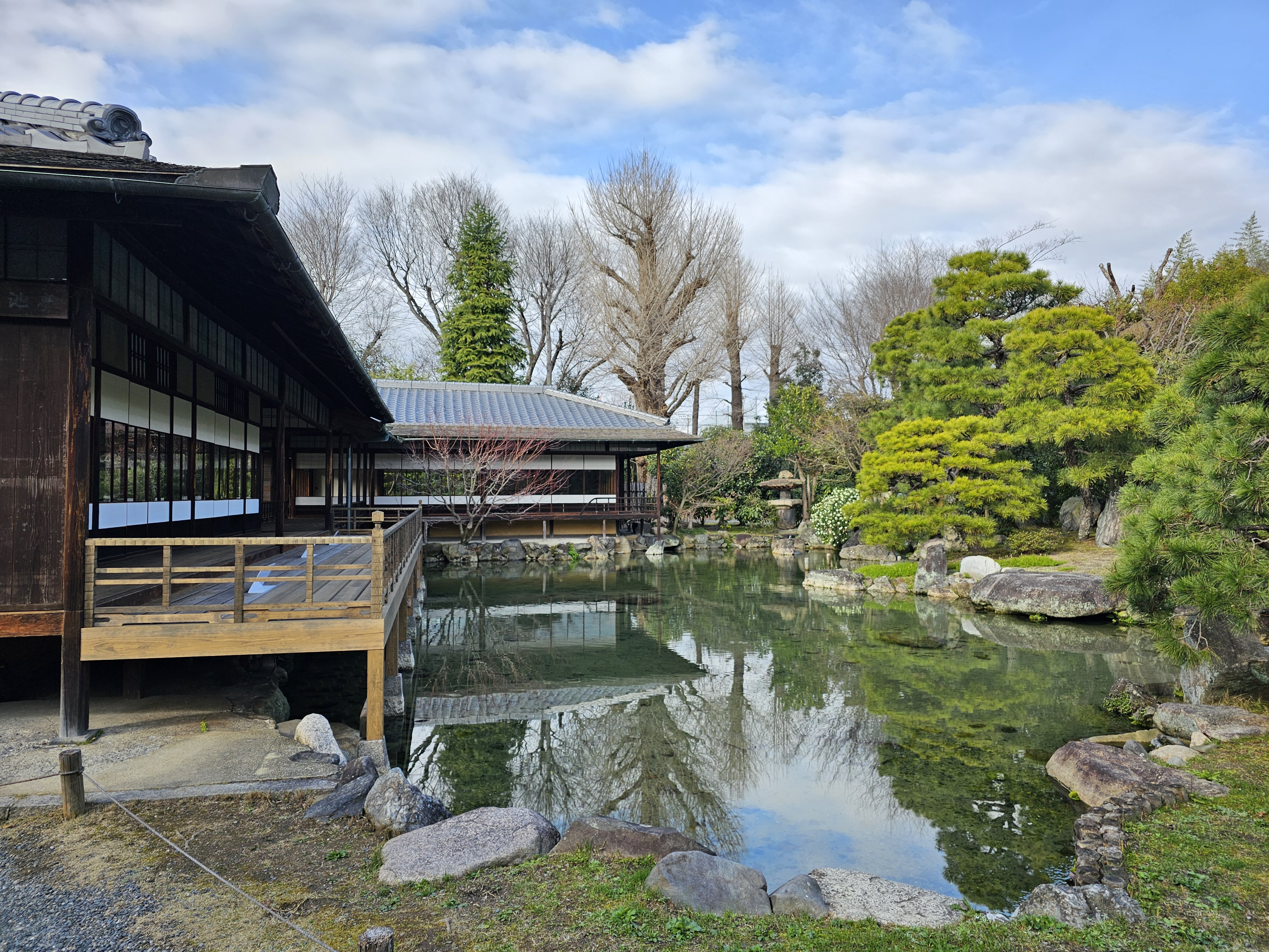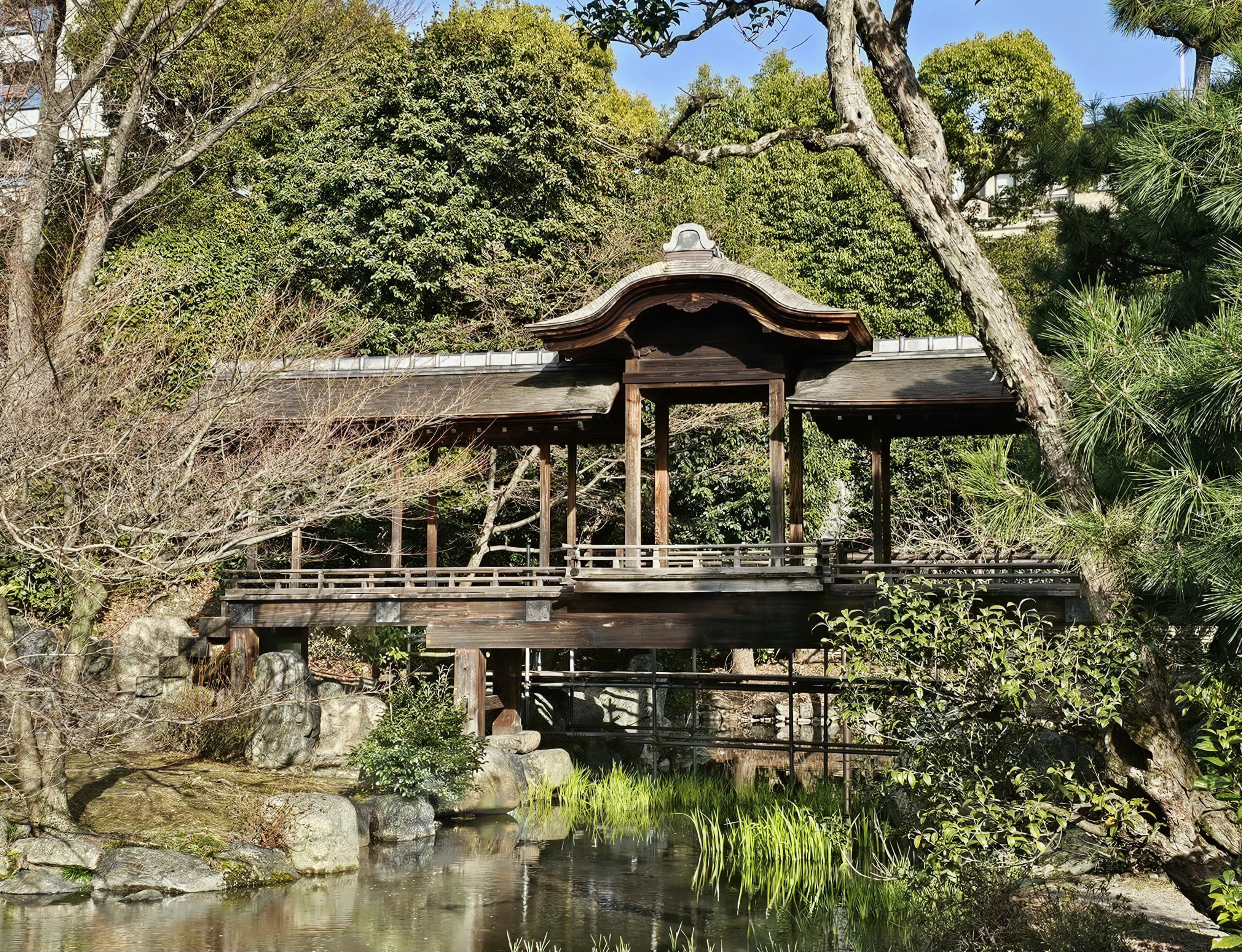 처음 하사받은 부지 보다 축소된 크기라 해도 정원은 조금씩 다른 구조를 가진 정자가 연못과 다리로 이어지며 충분히 아름다운 모습을 보여준다. 저 정자에 앉아 차를 마시며 고요함 속에 잠시 생각을 놓아버리는 것도 참 좋겠다 여겨지지만, 개방하고 있는 곳은 정원에 한정되어 있다. 그래도 교토역에서 멀지도 않고 히가시 혼간지와도 멀지 않으므로 한번은 찾아가 보는걸 추천한다. 입장료는 500¥ 이다.