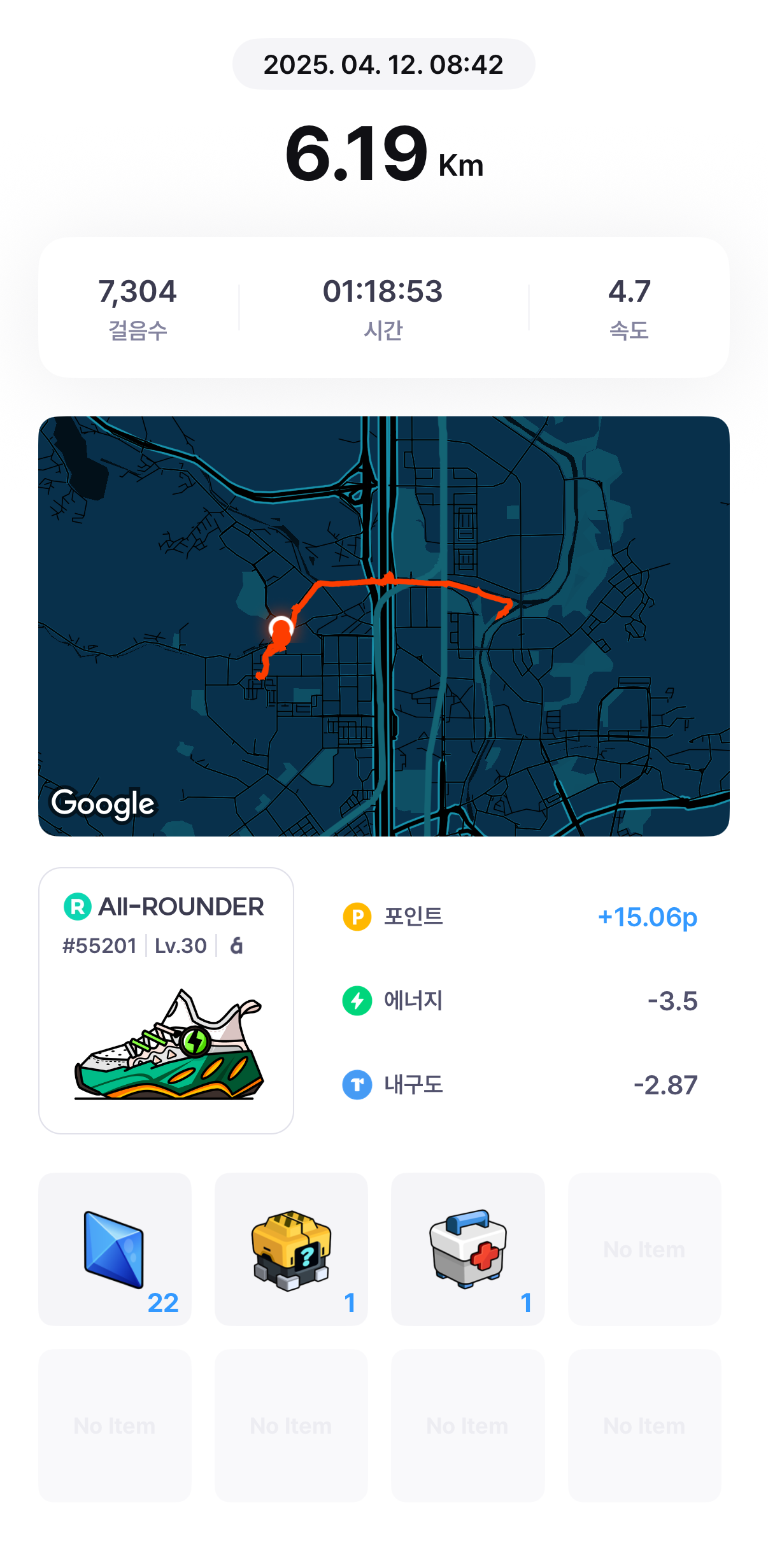 [m2e] 오늘 운동 완료 20250412jeongpd (54)in #kr • last year 주말에 비가 오는데~ 벚꽃이 다 떨어질 것 같아서 맘이 좀 안좋네요. 그래도 눈에 많이 담아보려고 합니다. #오운완(20250410/6.19km/2km) #krsuccess #m2e #superwalk #stepn-kr #aaa #avle