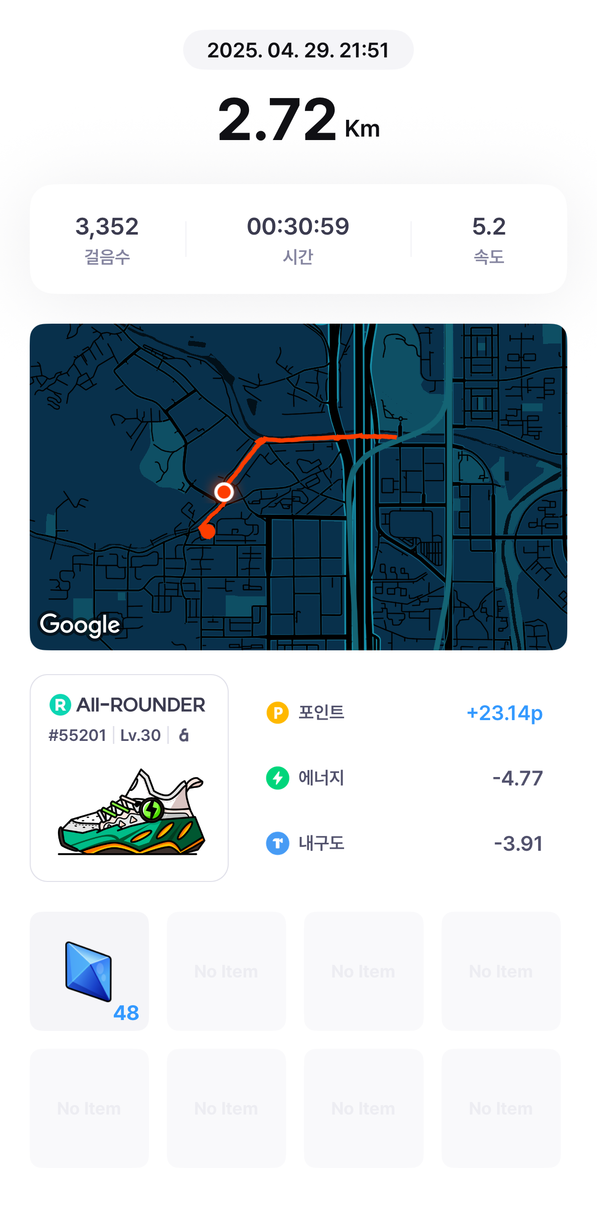 [m2e] 오늘 운동 완료 20250429, 20250428jeongpd (54)in #kr • last year #오운완(20250429/2.72km/2km) #오운완(20250428/4.8km/2km) #krsuccess #m2e #superwalk #stepn-kr #aaa #diary