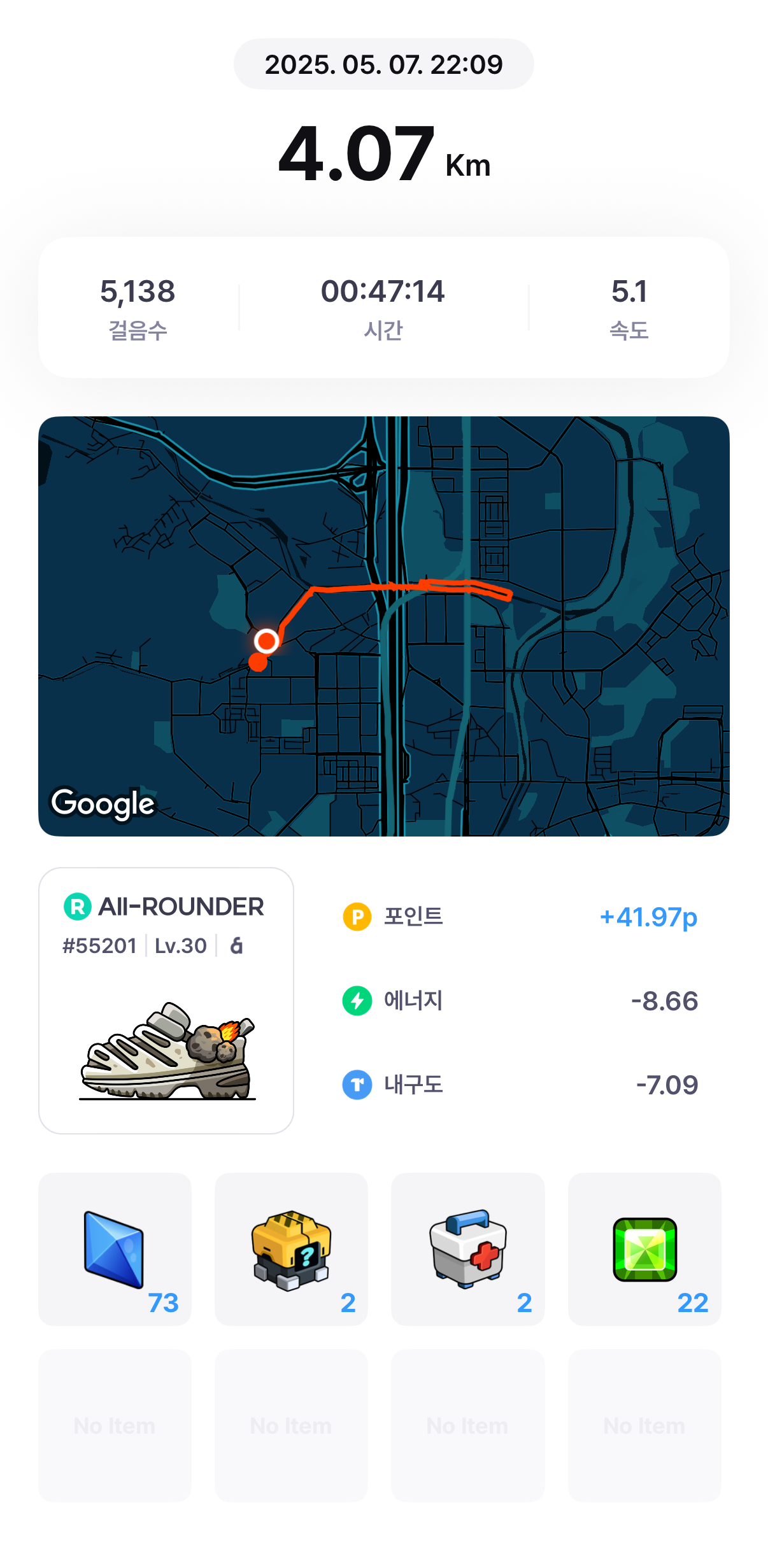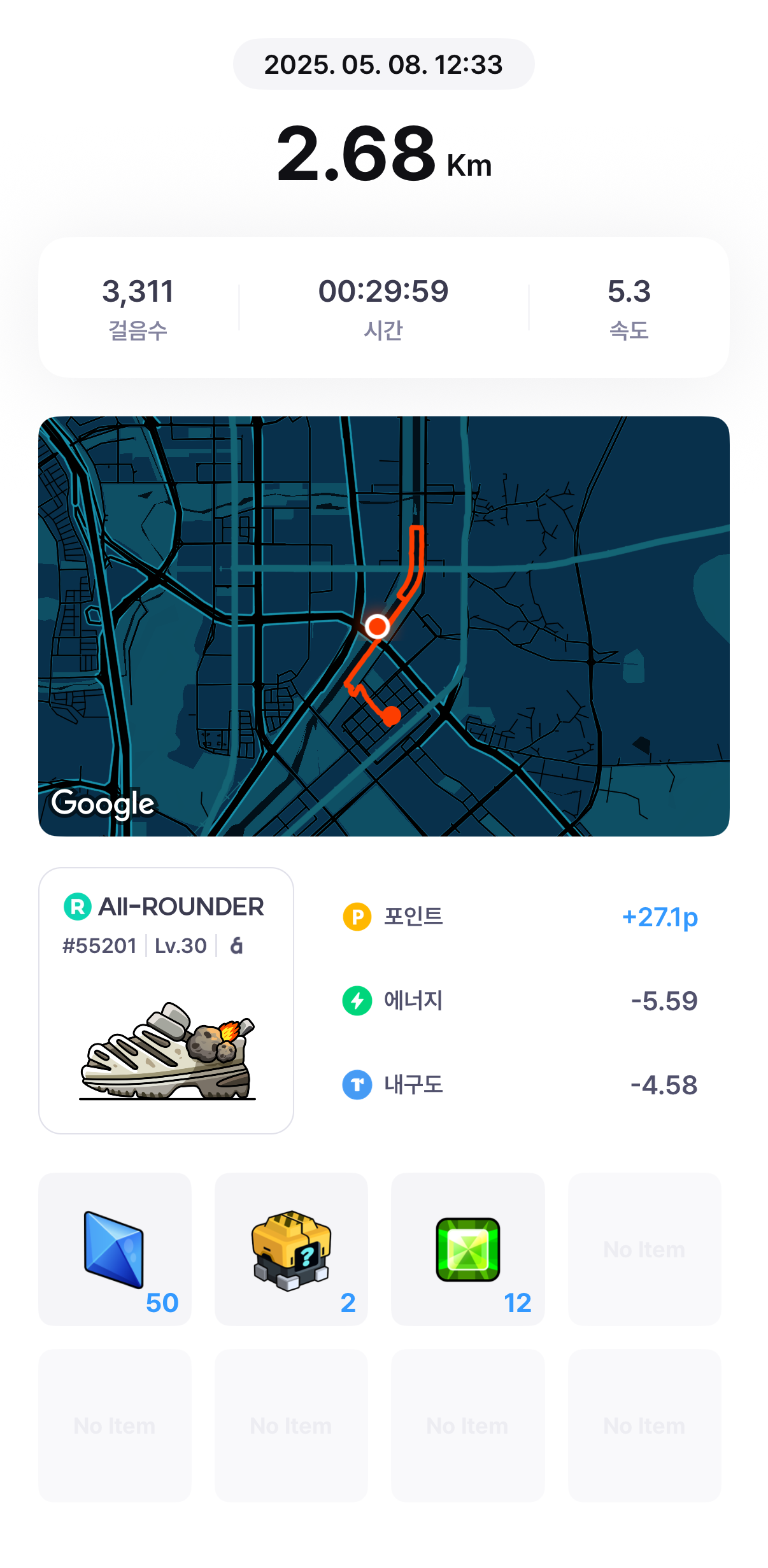 [m2e] 오늘 운동 완료 20250507 / 20250508jeongpd (54)in #kr • last year #오운완(20250508/2.68km/2km) #오운완(20250507/4.07km/2km) #krsuccess #m2e #superwalk #stepn-kr #diary #aaa