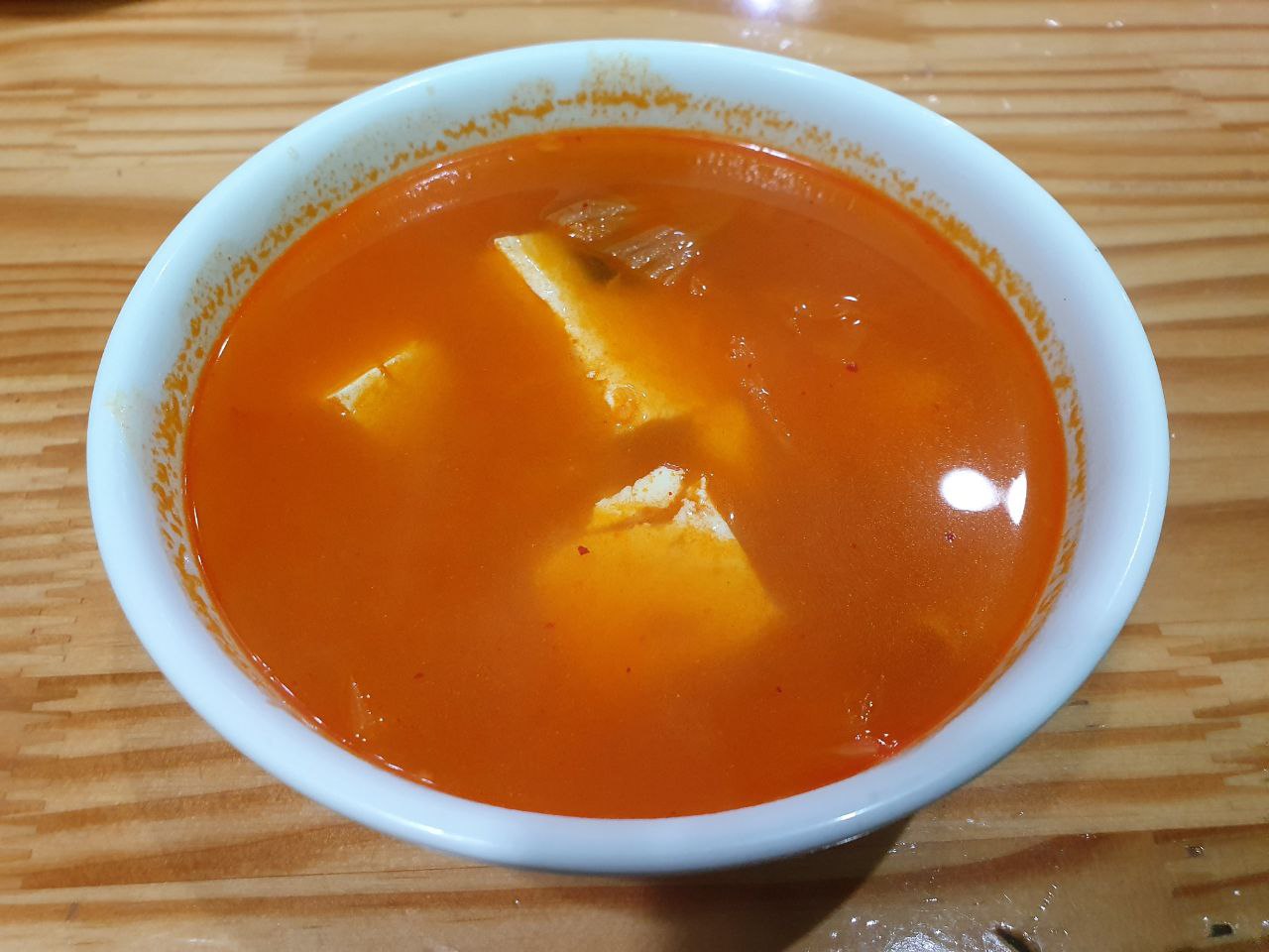 원래는 참치김치찌개였는데, 참치가 다 떨어진 건지 돼지고기가 대신 들어 있었다. 이것도 나쁘지 않다.
