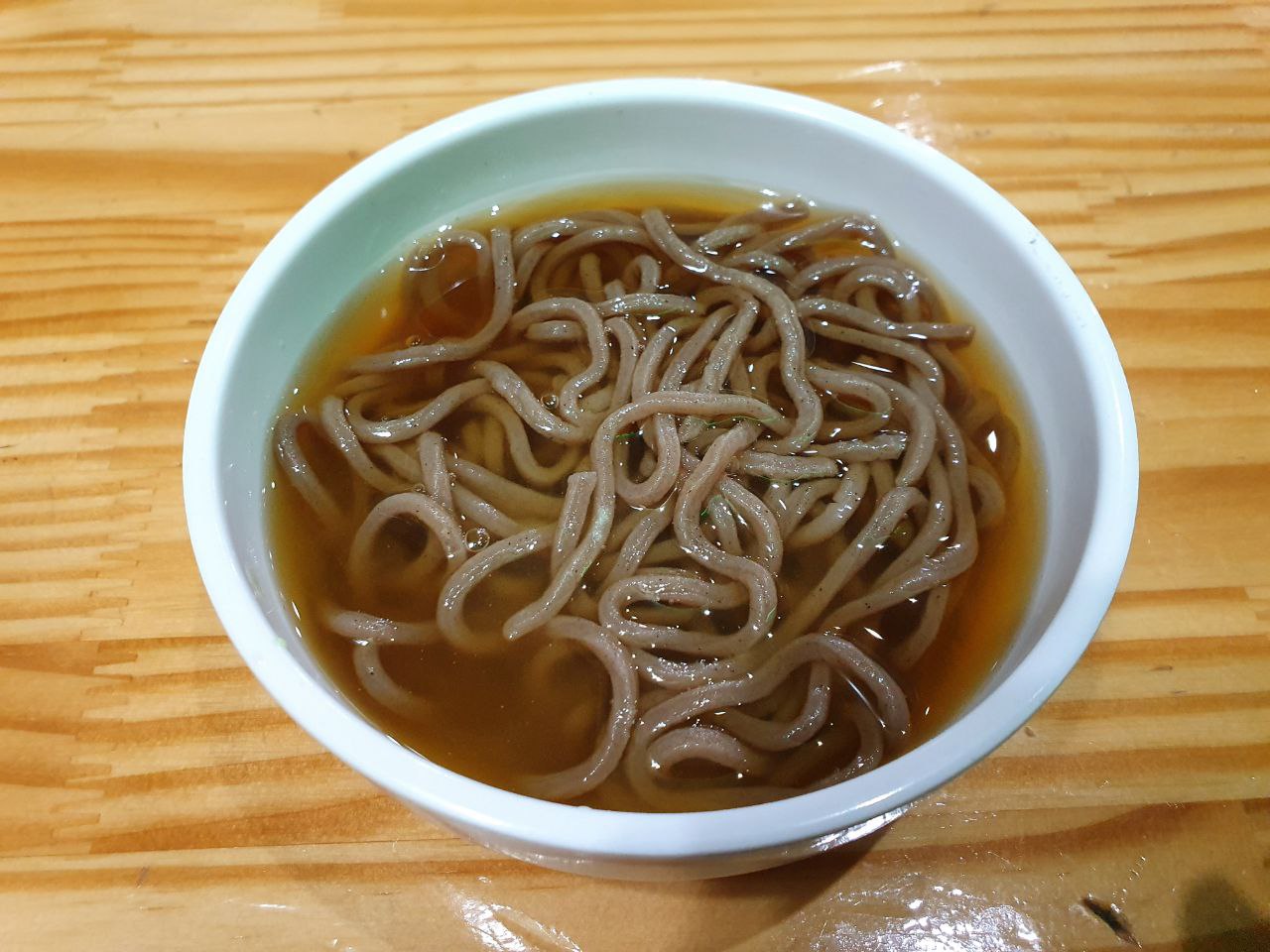 모밀국수. 국수는 so so ... 물을 따로 가져오지 않아서 국물을 물 대신 마셨다. 오늘은 뭐가 나올지... 삼겹살이 나왔으면 좋겠다.