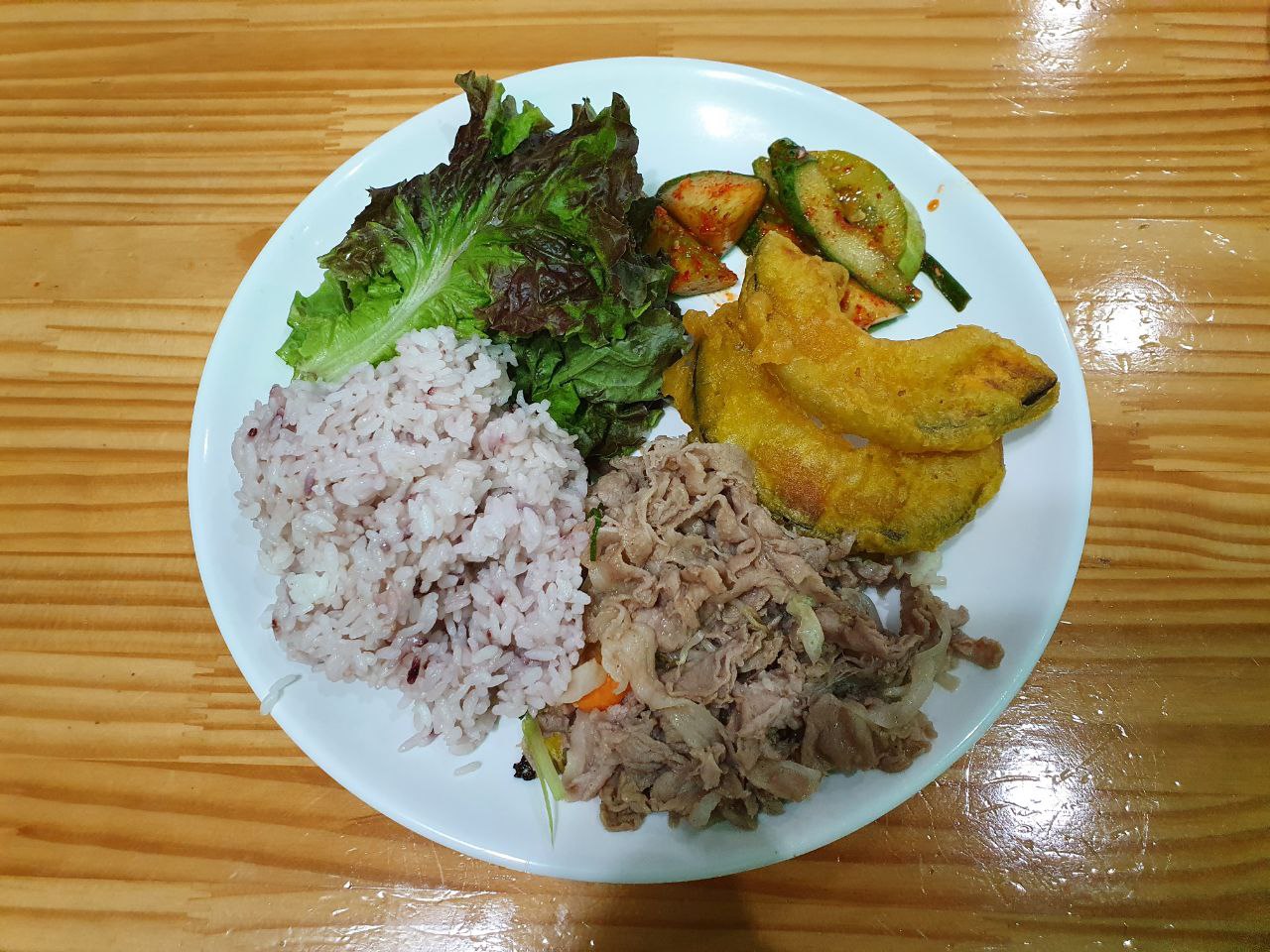 어제 점심은 길건너 한식부페에 다녀왔다. 원래는 주점인데, 점심 시간에는 다른 사람이 그 곳을 빌려 한식부페를 운영하는 곳이다. 현금으로 6000원이라는 저렴한 금액으로 이용할 수 있어 좋다. 가끔은 삼겹살구이가 나와서 마음에 드는 곳이기도 하다. 어제는 돼지불고기가 나왔고 이것도 나쁘지 않았다. 그외 단호박튀김, 김치찌개, 모밀국수 등이 있었다.\