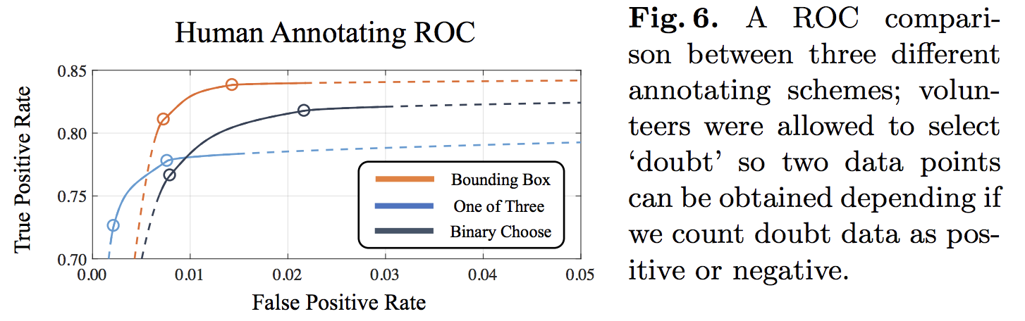 또 여기서 재밋는 연구를 제시합니다. 그럼 어떤 방식으로 정제를 해야 정확하냐 이겁니다. 사람을 보고 바운딩 박스를 치게 하거나, 3개 얼굴 중 제시한 사람의 얼굴이 뭔지 찾거나, 있다 없다식으로 정제하는 방법을 제시하고 얼마나 정확한지 체크합니다.