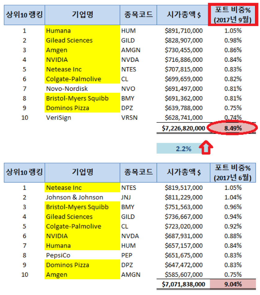 (2) 2017년 2분기 상위9개 대표 매수 주식들