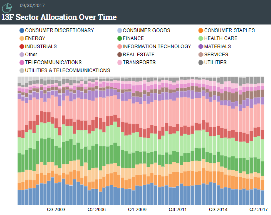 상위 10권 주식들에 대한 주요 매수 활동과 관련, 최근 2017년 3분기내 건강보험 서비스 기업, 휴매나 (Humana: HUM), 바이오 제약 그룹, 엠젠 (Amgen: AMGN) 그리고 인터넷 도메인 관리 기업, 베리사인 (VerSign: VRSN)에 대한 두자릿 수 이상의 높은 매수 활동이 관찰되며, 반면에 올들어 인공지능 (AI) 대표 수혜주로 종합되며 +100% 주가 상승세를 기록하는 엔비디아 (NVIDIA)에 대한 부분 매도 활동을 통한 이익 실현 현황도 관찰됩니다.