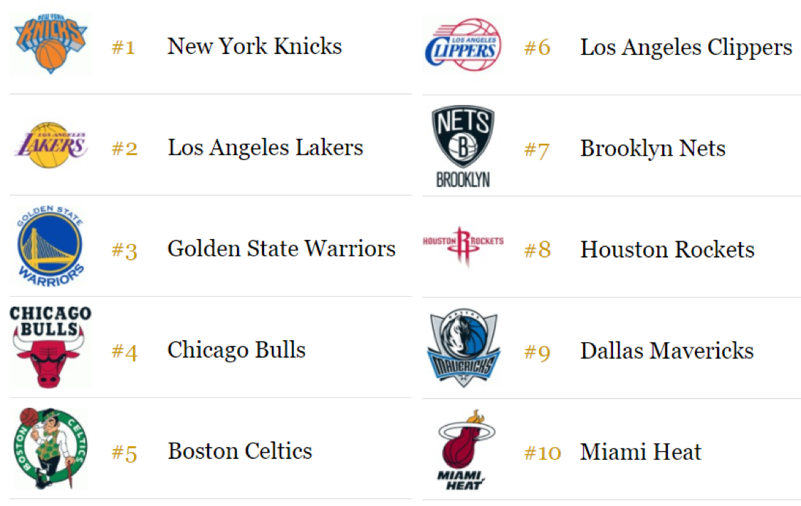 - 뉴욕 닉스 (New York Knicks) 팀 관련 추가 자료 (출처: 포브스)