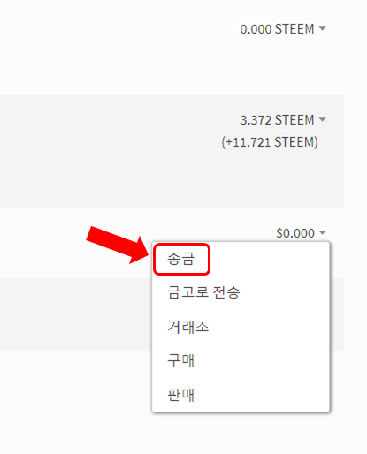 1. "지갑 - STEEM DOLLAR - 송금" 을 클릭한다.