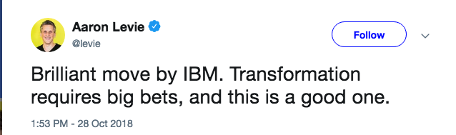 최근 IBM은 비즈니스 변화에 잘 적응하지 못하고 많은 고통을 겪고 있었는데, 놀라운 소식이 아닐 수 없네요. Box의 CEO인 Aaron Levie는 이에 트위터에 “때때로 회사는 꽤 대담한 결정을 해야 한다”라고 남겼는데요.