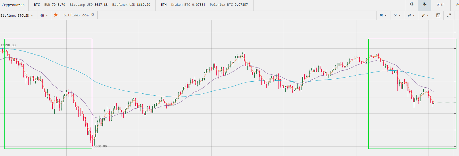 이전 최저점 6000달러 찍기 전의 그래프와 비슷한 그림으로 진행되고 있어요.
