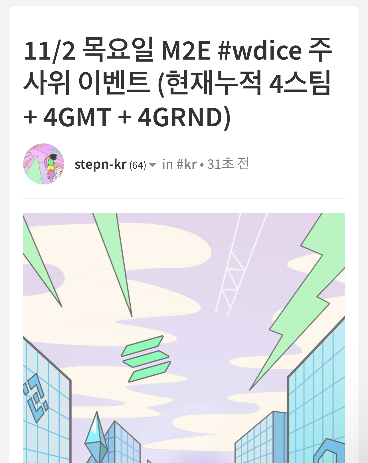 - M2E 활동을 포스팅하는 분은 @stepn-kr 의 주사위 이벤트에 매일 참여하실수 있습니다