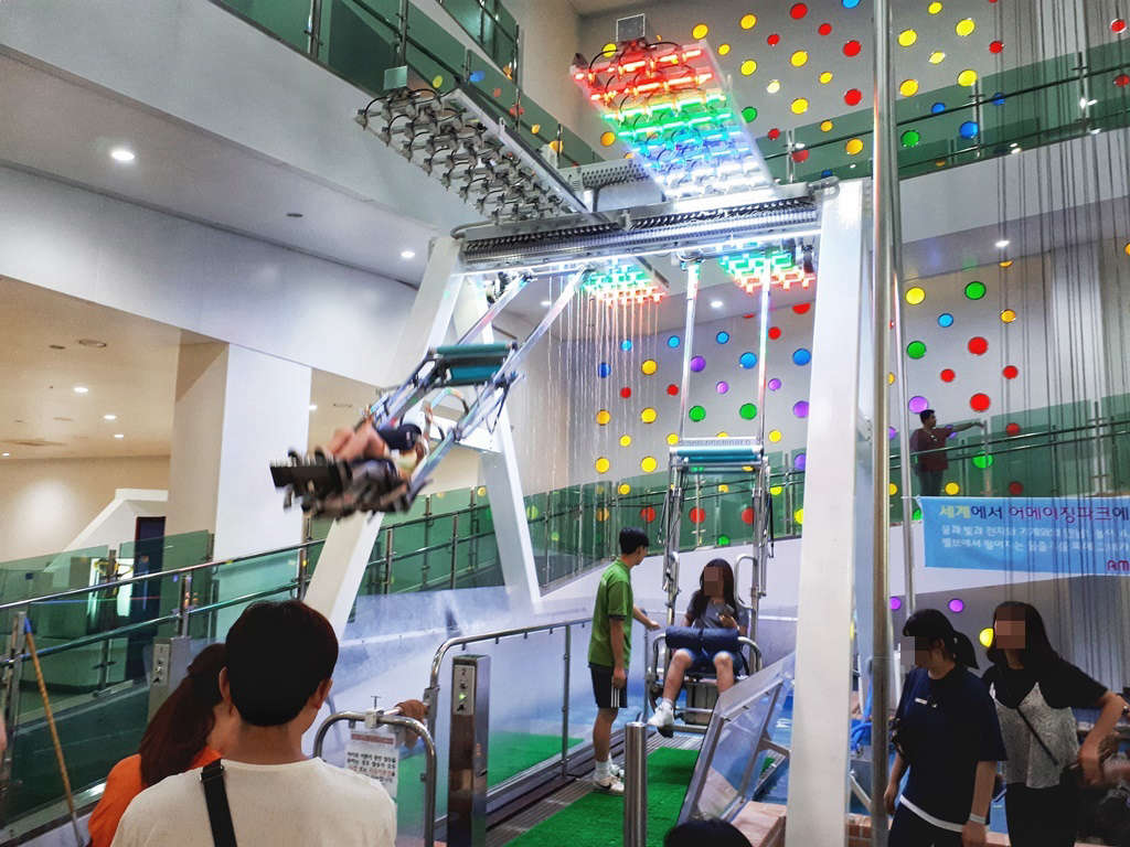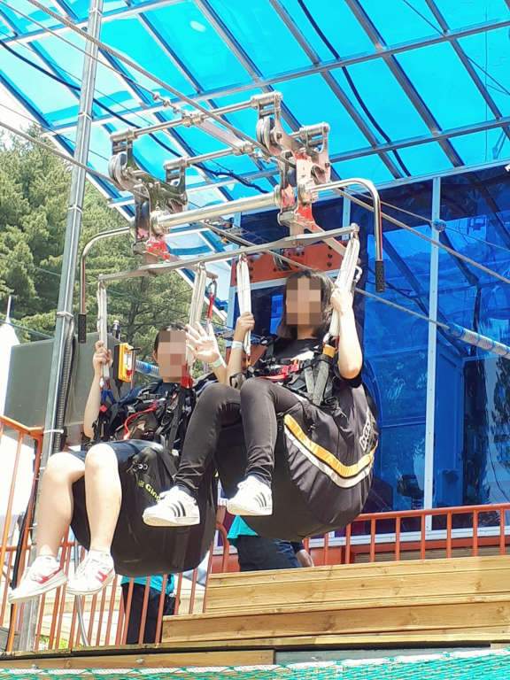 ▲ 짚라인은 구조상 길이가 길지 않아서 특이하게 한번 내려갔다가 다시 자동으로 올라왔다가 다시한번 내려가는 방식으로 진행을 합니다.