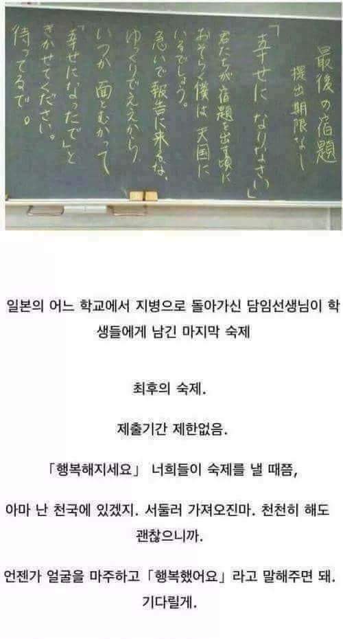 (펌)가장 어려운 숙제! 슬픔주의! ㅜㅜjunsol (32)in #kr • 8 years ago 가장 어려운 숙제랍니다... 행복이 멀까요... 어찌 됐건간에 행복해지세요... 행복하세요... 행복합시다! 행복합니다! ^^♡ #steemit #junsol #korea #happy