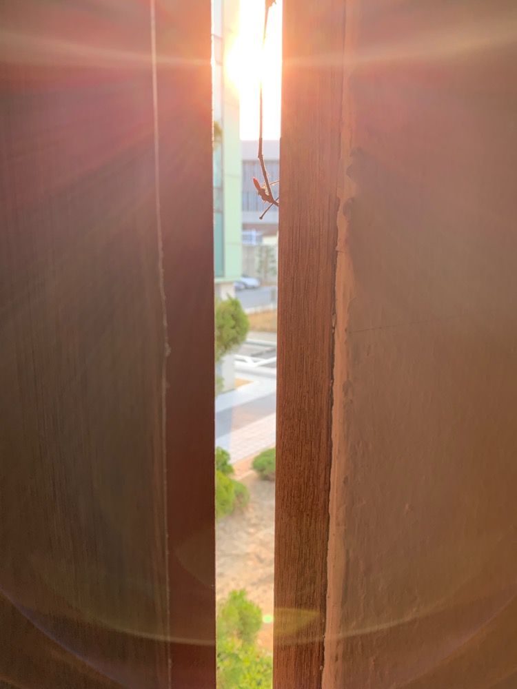아침에 그냥 문을 닫으려는데 나를 보고있는 햇살을