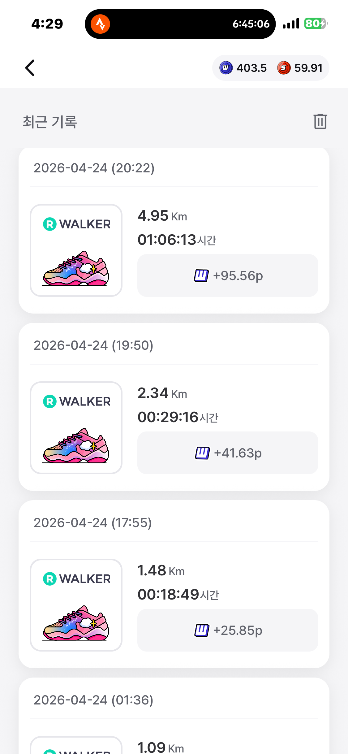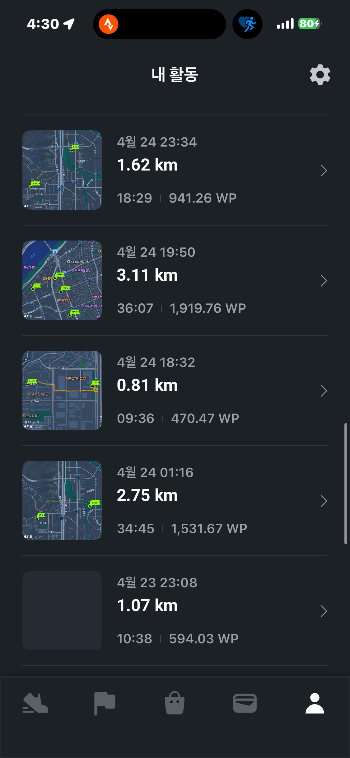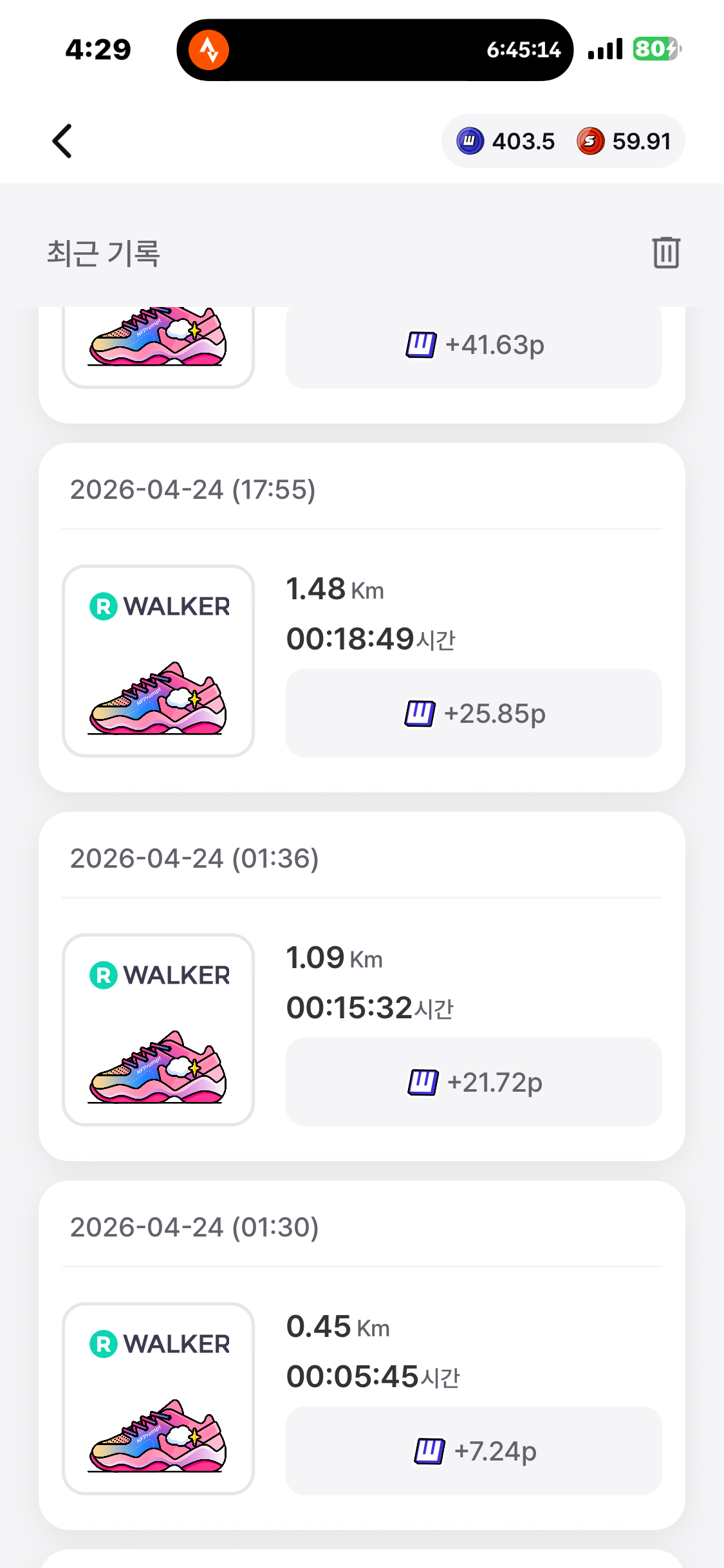 [2026년 4월 24일] 어제의 운동 14.83km걷기(목표 10km)