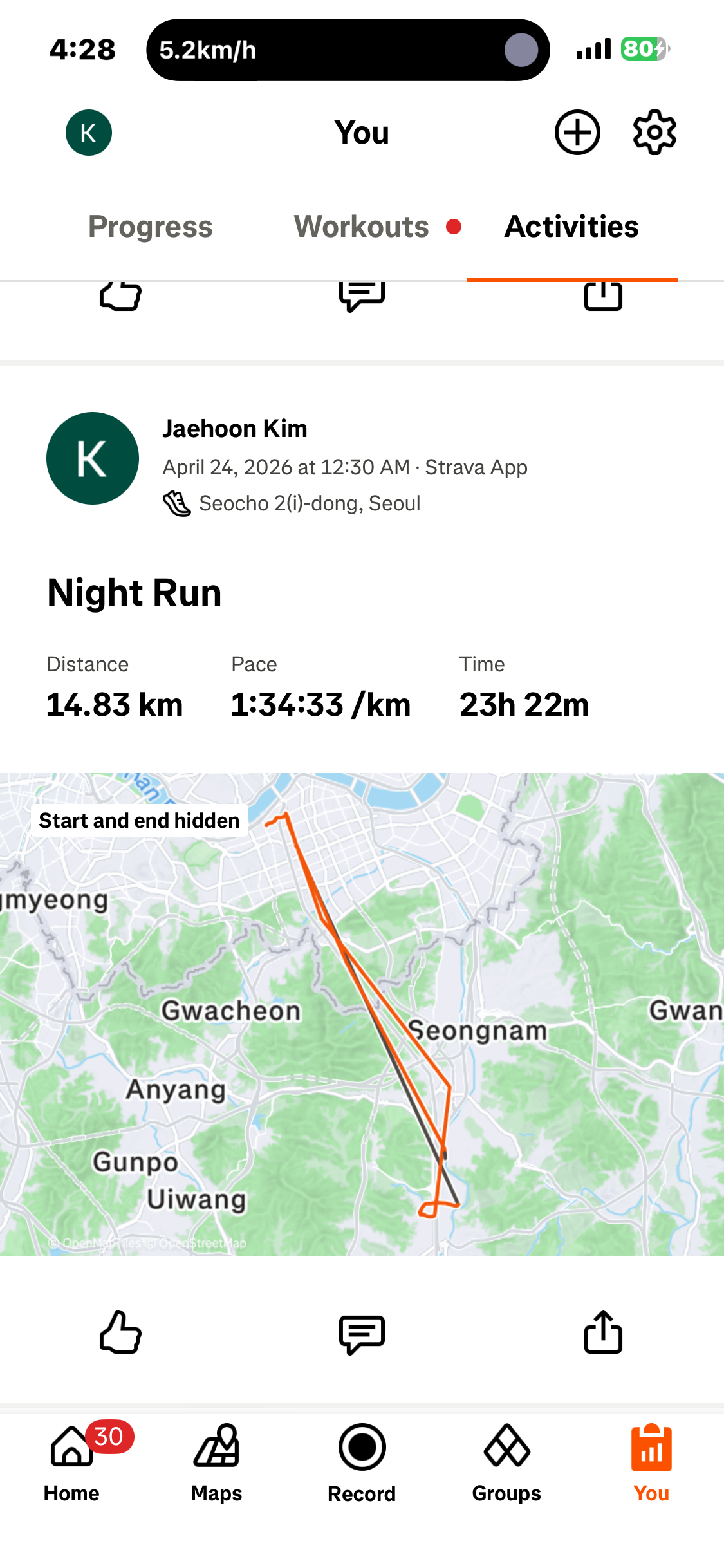 14.83km 걸었습니다