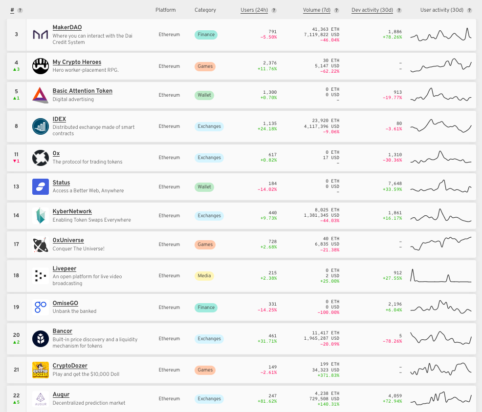 이더리움에 들어가보면 메이커다오, 마이크립토히어로즈, BAT, IDex, 0X, status 등등이 나오고 있습니다.