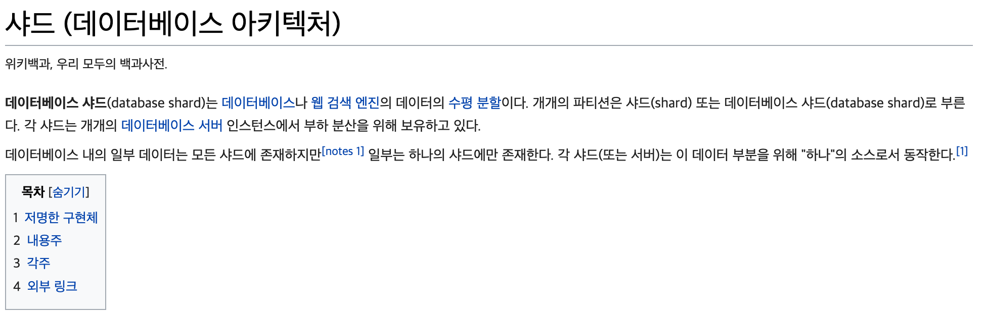 샤딩은 현재 데이터베이스에서 이미 존재하는 개념입니다