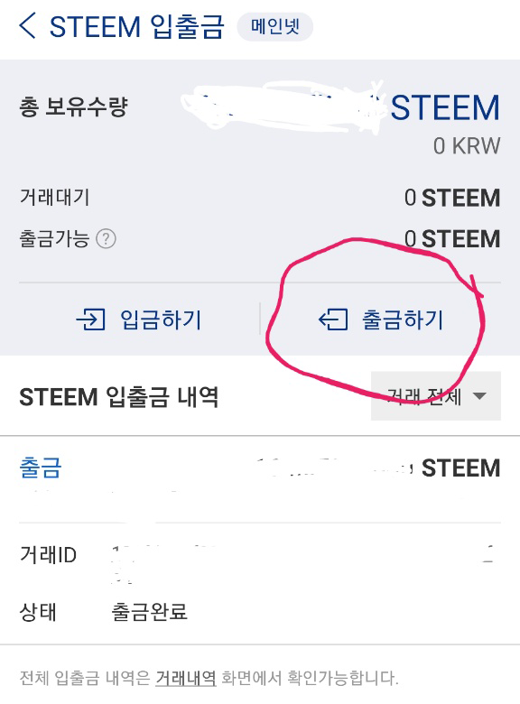 아무튼 그렇게 해서 보내면 언젠가 출금완료 알림이 뜨고 이제 스티밋 월렛에 들어가시면 됩니다.
