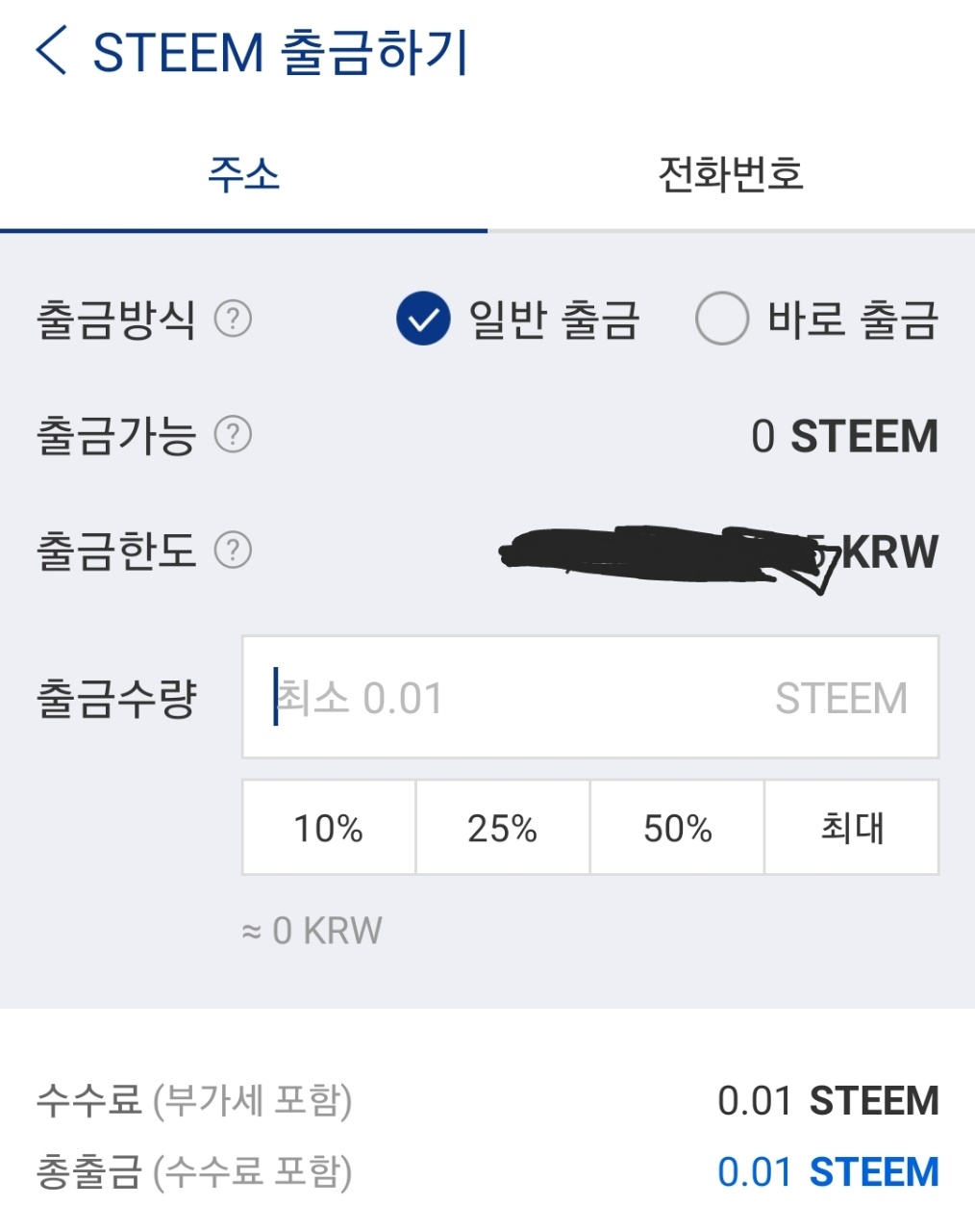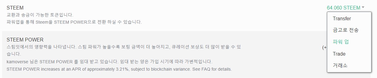 스팀 코인을 샀다면, 이제 입출금 탭에서 STEEM 탭에 들어가야 합니다.