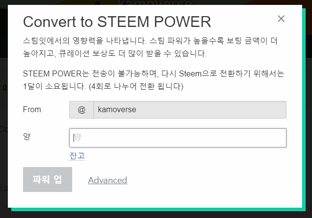 그러면 여기다가 파워업하실 양을 넣고