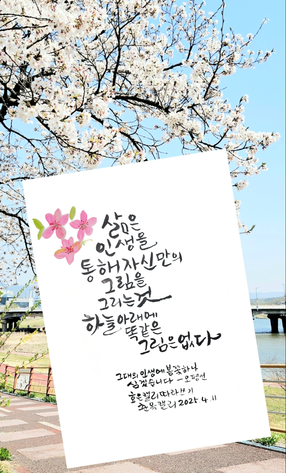 그대에 인생에 봄 꽃 하나.....kco6772 (58)in #kr • last year 삶은 인생을 통해 자신만의 그림을 그리는것 하늘 아래에 똑 같은 그림은 없다. 그대의 인생에 봄꽃 하나 심겠습니다 -오평선님 글 중에서 #krsuccess #buddha #mind #heart #calligraphy