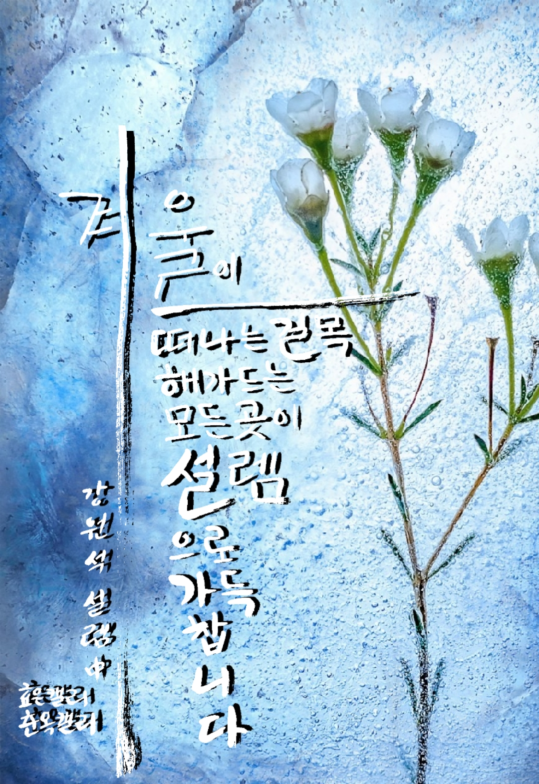 겨울이....강원석kco6772 (58)in #kr • last year 설렘 강원석 겨울이 떠나는 길목 해가 드는 모든 곳이 설렘으로 가득 찹니다 흰 눈을 비집고 나오는 새싹이 개울가 얼음 아래 개울물이 움츠린 마음속의 꿈들이 봄이 오는 길목 해가 드는 모든 곳이 두근두근거립니다 강원석 _시인 #krsuccess #buddha #mind #heart #calligraphy