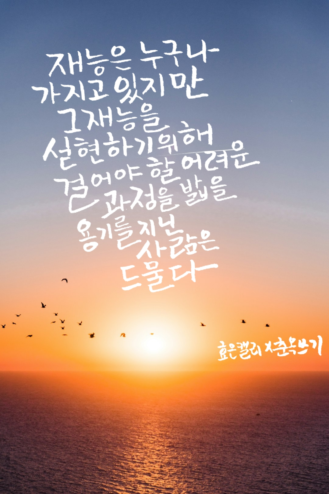 재능은 누구나 가지고......kco6772 (58)in #kr • last year 재능은 누구나 가지고 있지만 그 재능을 실현하기 위해 걸어야 할 어려운 과정을 밟을 용기를 지닌 사람은 드물다. #krsuccess #buddha #mind #heart #calligraphy