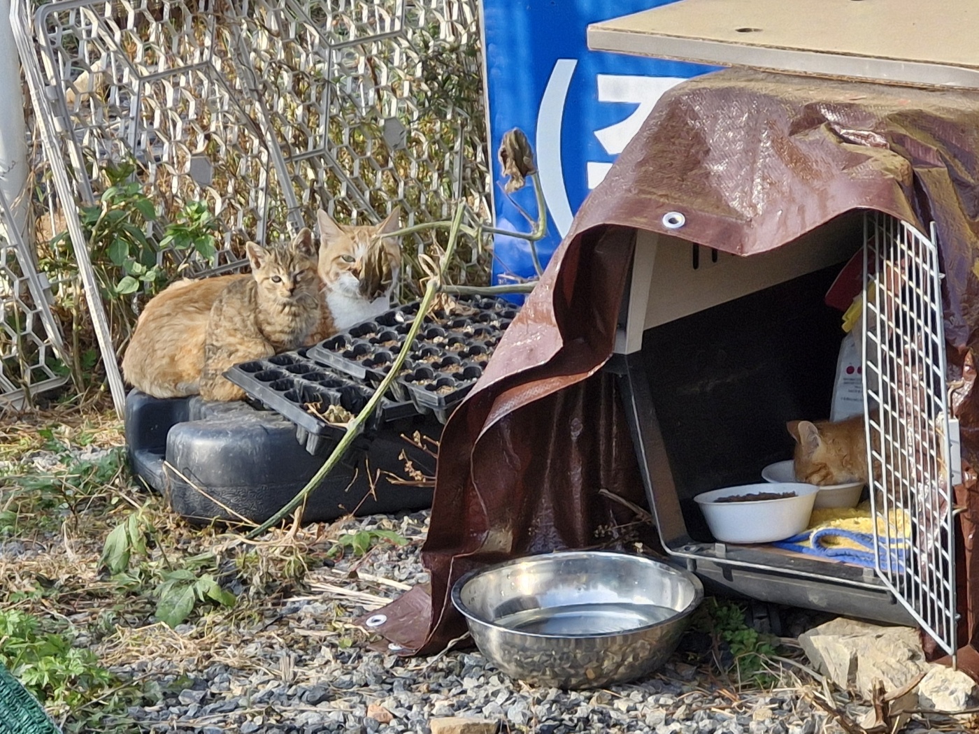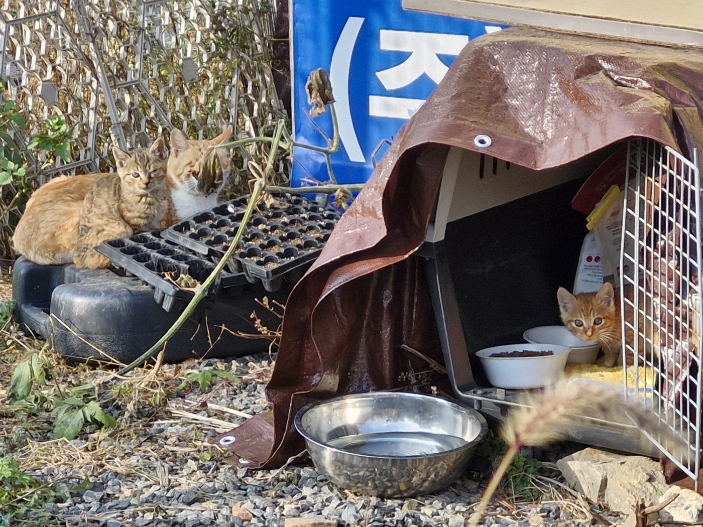 텃밭에 자리잡은 고양이 가족kdy8998kk (80)in #kr • last year 벌써 밥 챙겨주고 집 지어주고 한지가 20여일이 되어간다. 어미는 여전히 하악질이지만 그래도 강도가 좀 약해졌다. 생각보다 물을 참 많이 마시는것 같다. 오늘은 바빠 이틀 만에 갔더니 물도 사료도 뚝딱! 새끼가 그동안 한 마리만 보여 걱정했는데 다행히 세 마리가 다 생존해 잘 자라고 있는 것을 확인! #krsuccess #steem