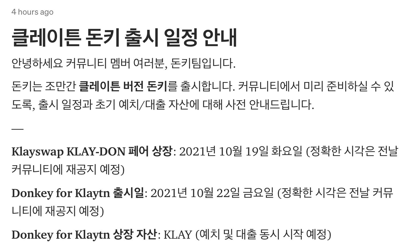 [Donkey.fund] 클레이튼 런칭 날짜 확정