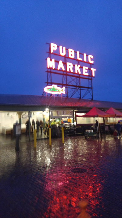 5시가 되면 많은 가게들이 문을 닫기 시작하기 때문에 ‘한식’을 배부르게 먹고 난 후 서둘러서 유명한 파이크 플레이스 마켓으로 이동했다. (재래시장 같은 곳)