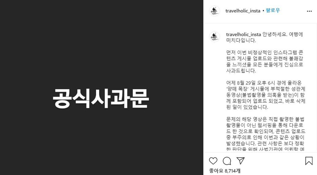조 대표가 '여행에 미치다' 공식 SNS에 성행위 동영상을 올렸고, 해당 동영상이 소위 말하는 성착취 동영상일 가능성이 제기되면서 악플에 시달렸기 때문입니다.