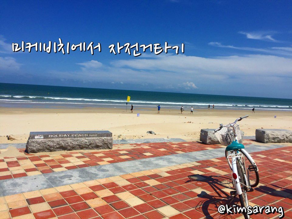 미케비치 앞 호텔에서 무료로 빌려주는 자전거로 미케 비치 한 바퀴 도는 것 추천!