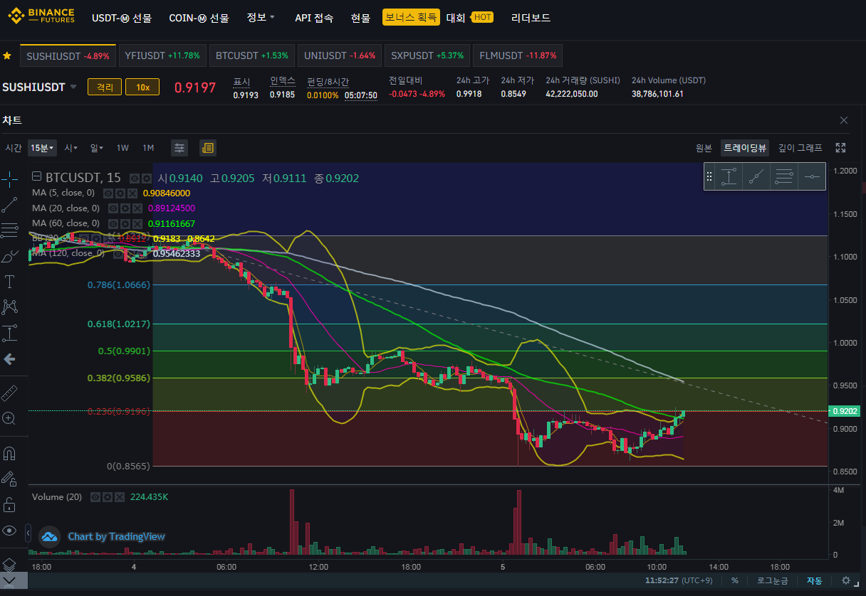바이낸스 선물 숏숏!! 스시 SUSHI 코인 지옥까지 같이가자??!!!