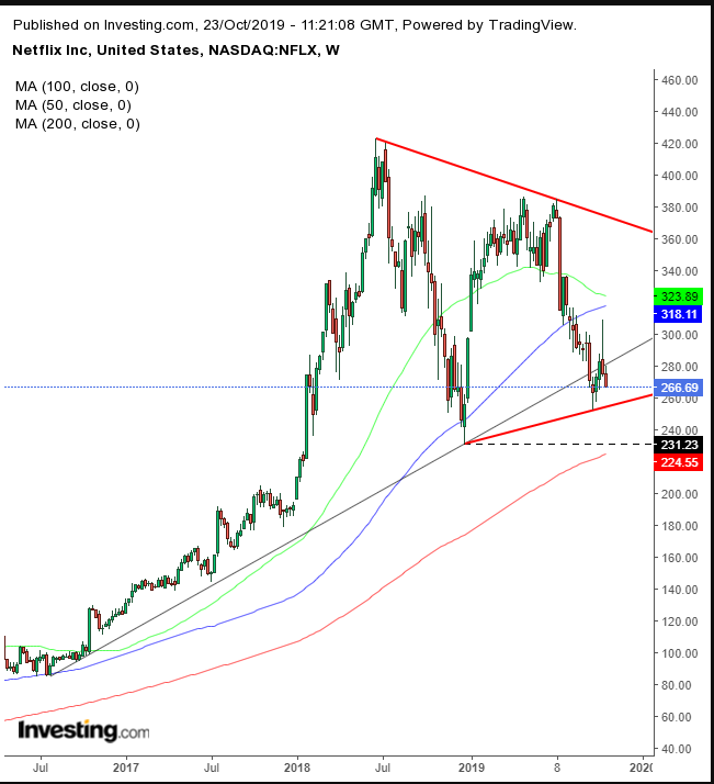 10월 18일 약 6.2% 하락했던 넷플릭스의 주가는 어제 4% 이상 하락했다. 넷플릭스는 디즈니(Disney, NYSE:DIS)나 애플(Apple, NASDAQ:AAPL)과 같은 업체들의 스트리밍 서비스 개시로 경쟁이 더욱 치열해질 것이라는 전망에 시달려왔다.