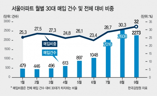 한국감정원 9월 통계자료…30대 매입 비중 32% 월간 최대, 마용성ㆍ송파구 등 몰려