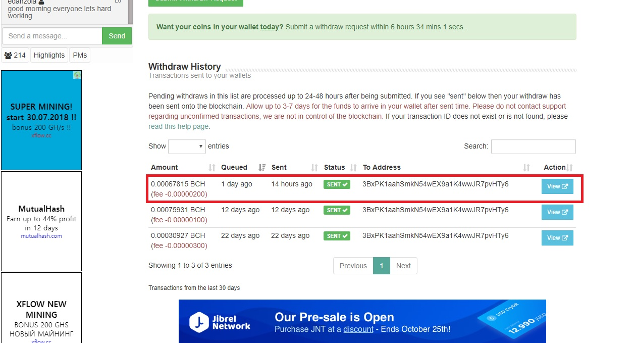 Faucet Hub 출금 7월 30일kkpmk02 (39)in #kr • 8 years ago 허브 출금내역 입금 메일 업비트 입금내역 비트코인 캐시 누적 - 0.0279788 허브 관련글 - https://steemit.com/freecoin/@kkpmk02/faucet-hub 사용 수도꼭지 관련글 https://steemit.com/kr/@kkpmk02/faucet-hub-allcoins https://steemit.com/kr/@kkpmk02/faucet-hub-3btc https://steemit.com/kr/@kkpmk02/freebitcoinwin-faucet #freebitcoin #coin