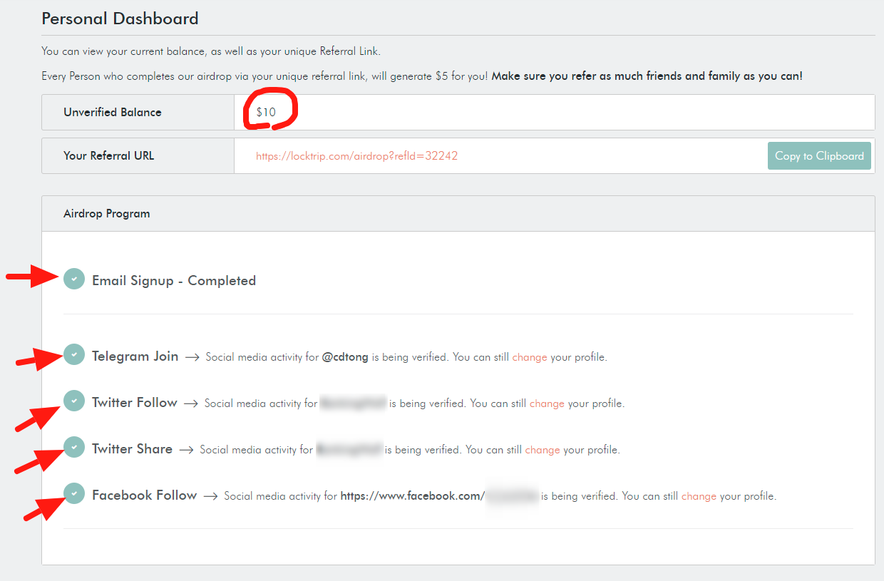 모두 완료가 되었다면 위와 같이 에어드랍 10불 받으신 것을 확인하실 수 있습니다
