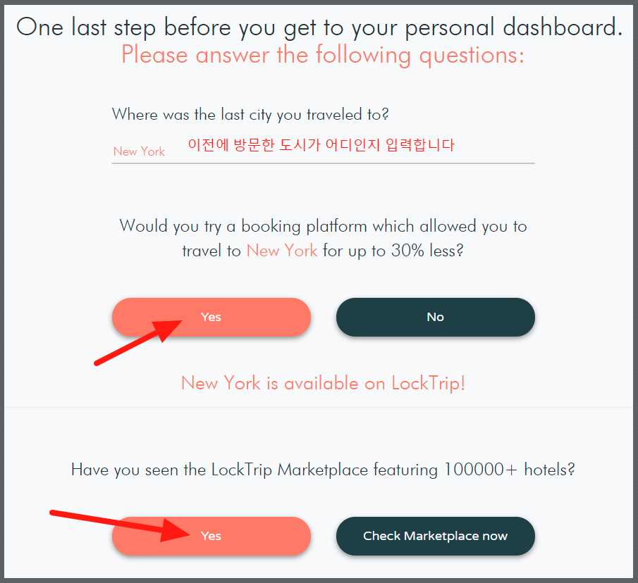 이전에 방문했던 도시와 할인 프로그램이 있다면 사용할 것인가, 우리는 수많은 호텔과 제휴 중이다 알고 있었는가를 물어봅니다