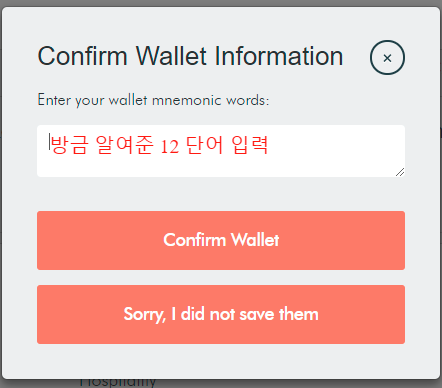 입력하시고 Confirm Wallet 버튼을 클릭합니다