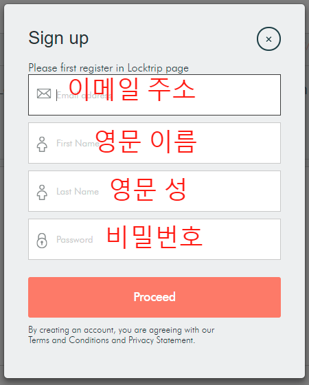 가입 양식을 위와 같이 작성해 줍니다