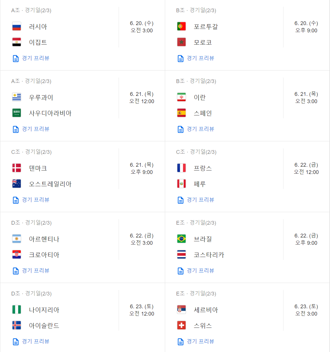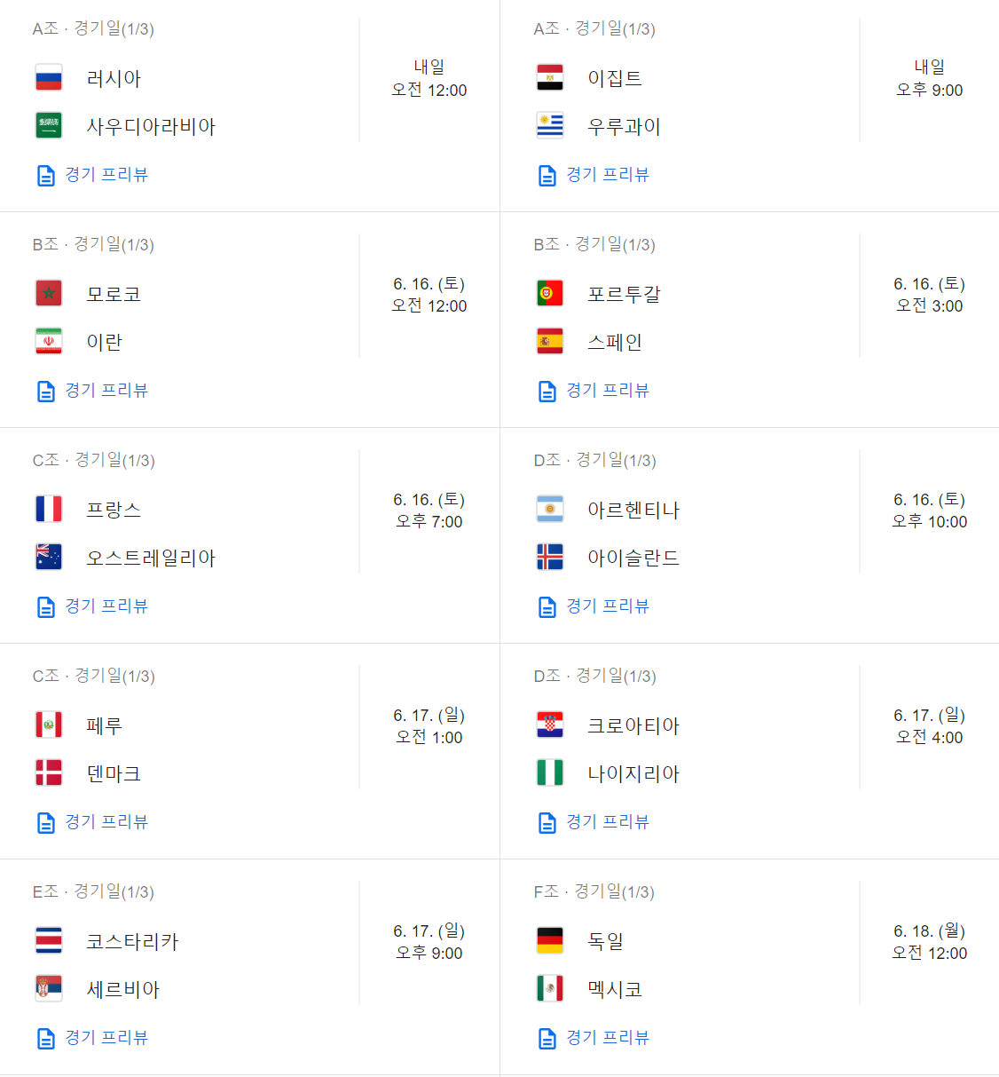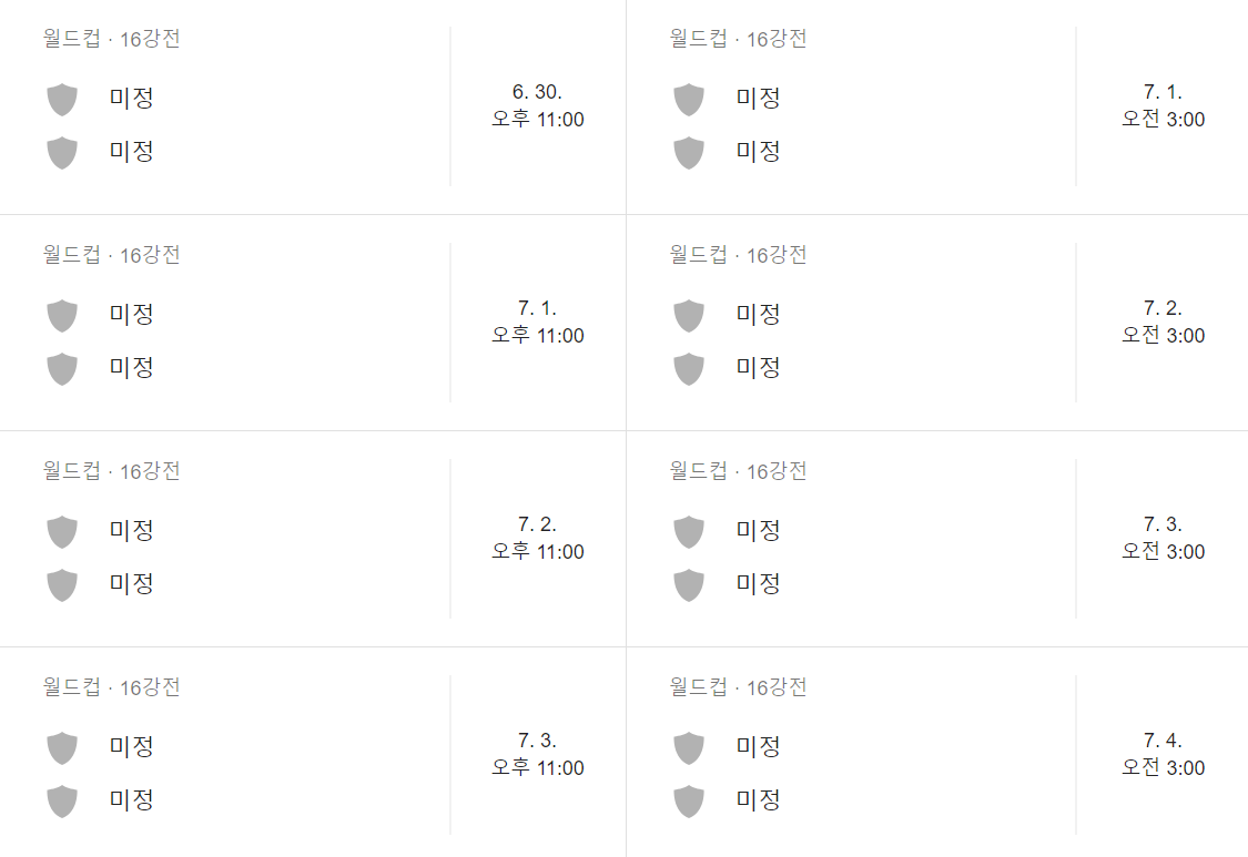자 그러면 경기 일정을 안내 해 드리겠습니다. 우리나라 경기는 빨간색으로 표시 해 놓았으니 참고 하시구요 ㅎ