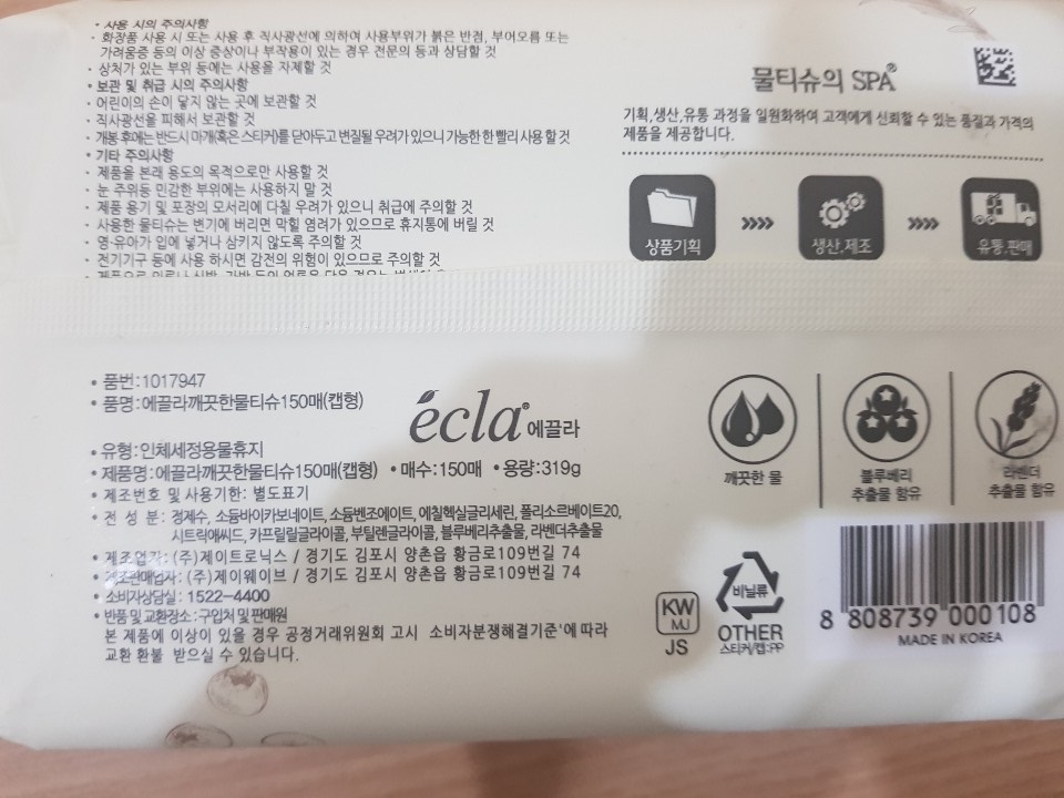 매일 사용하는 깨끗한 물티슈 용량이 150매! 어마무시!!